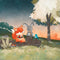 Illustration of a fox and rabbit watching fireflies they caught in a jar.