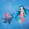 Art print of a mermaid and sea turtle on a rock watching for shooting stars.