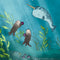 Art print of a narwhal and sea turtle swimming in the ocean.