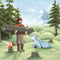 Art print of Paul Bunyan and Babe the blue ox staying warm by a campfire.