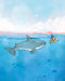 Art print of a sea turtle riding a manta ray.