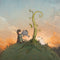 Illustration of a unicorn and griffin (and snail!) on a swing in an enchanted forest.